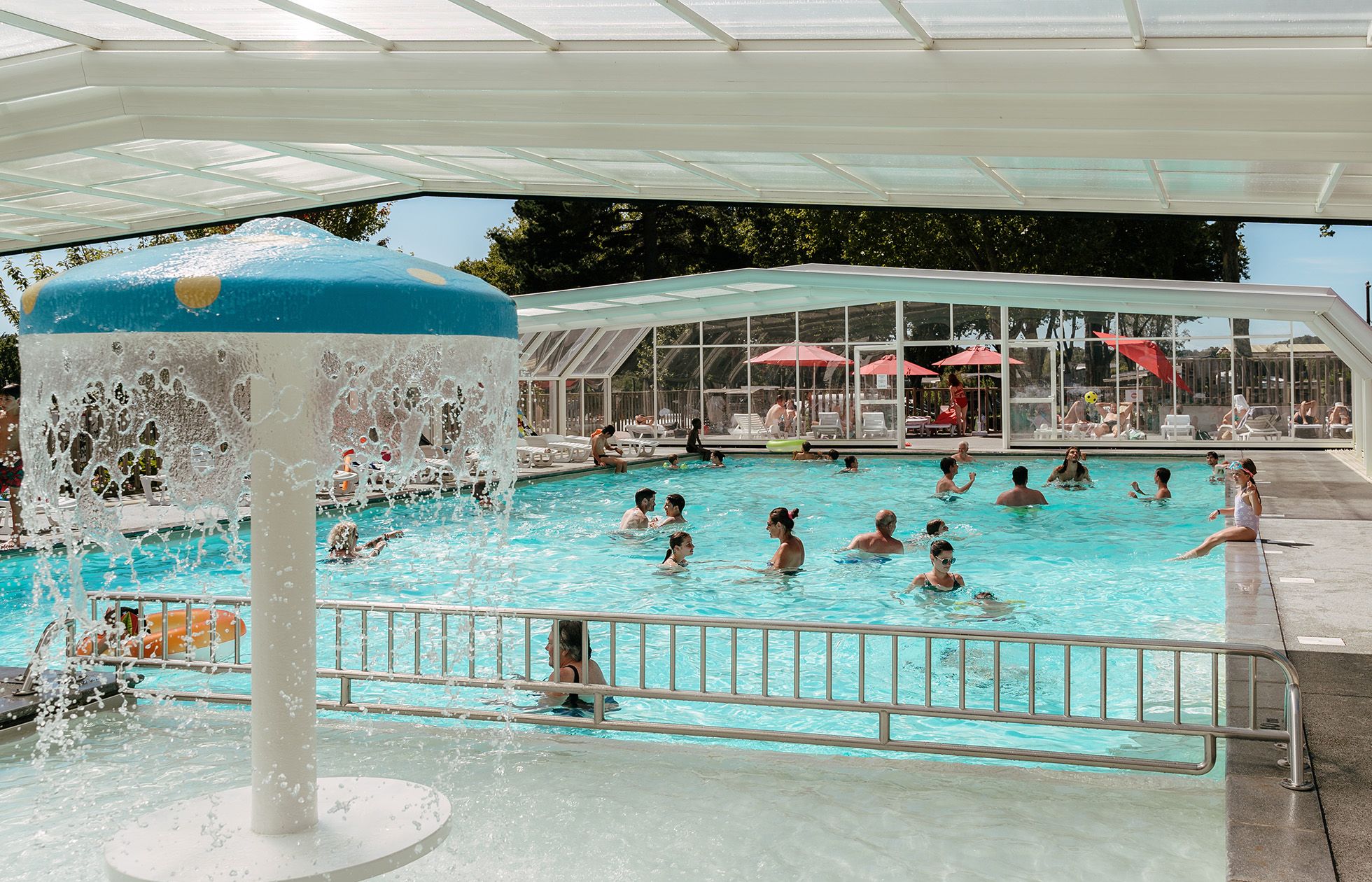 - Espace piscine avec piscine couverte chauffée de 200 m², pataugeoire et jeuxd'eau, transats et parasols
